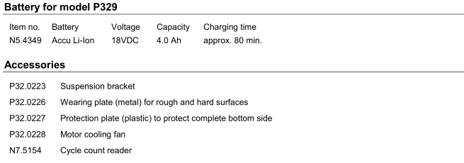 電源:電池鋰離子電池18VDC / 4.0 Ah