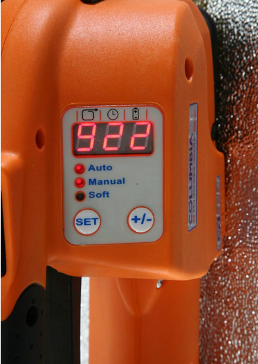 4、采用的14.4 Vdc - 3.3 Ah鋰電池,電池可隨時充電,無記憶效應。 打帶條數多,,每次充電可打450條帶子左右,